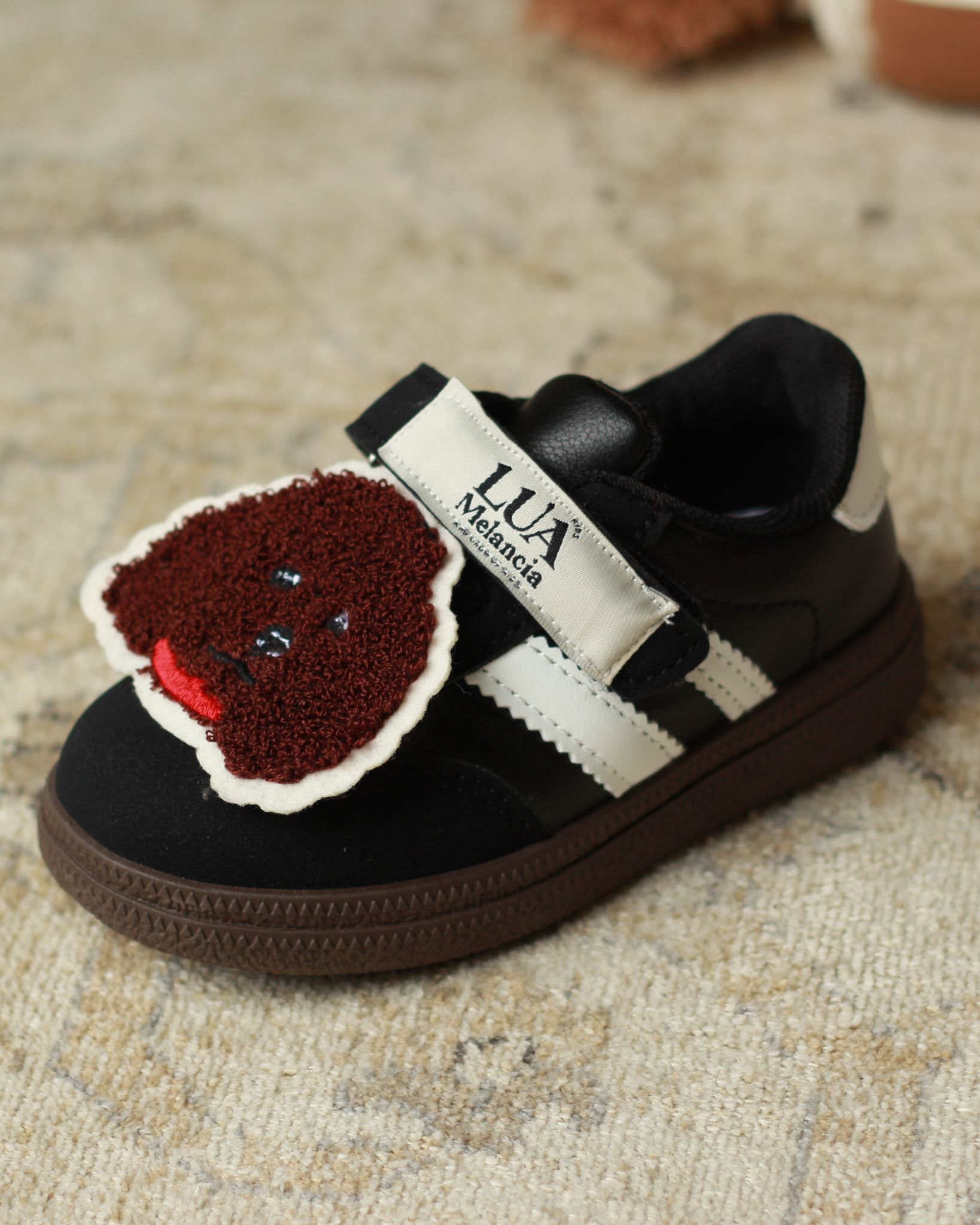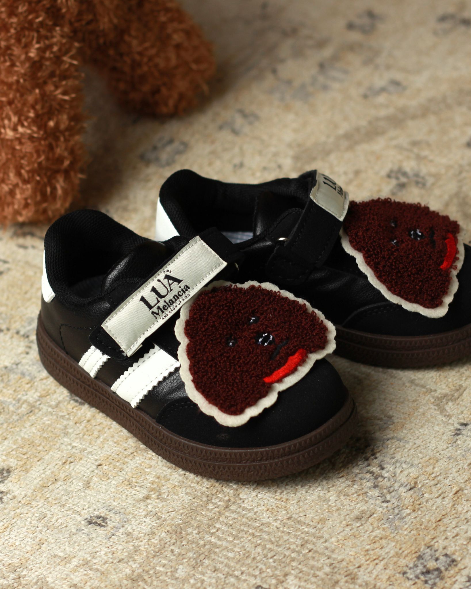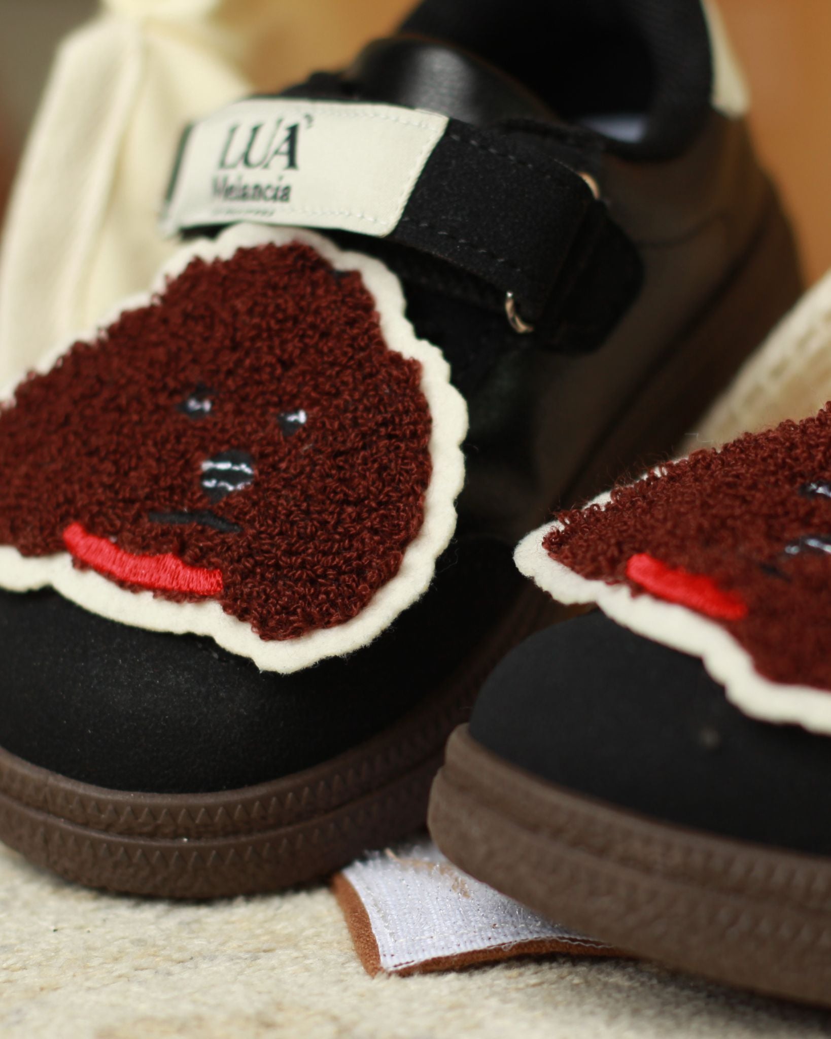 Sapatilhas tipo ténis com fecho de cordões ajustáveis, fivela em velcro.