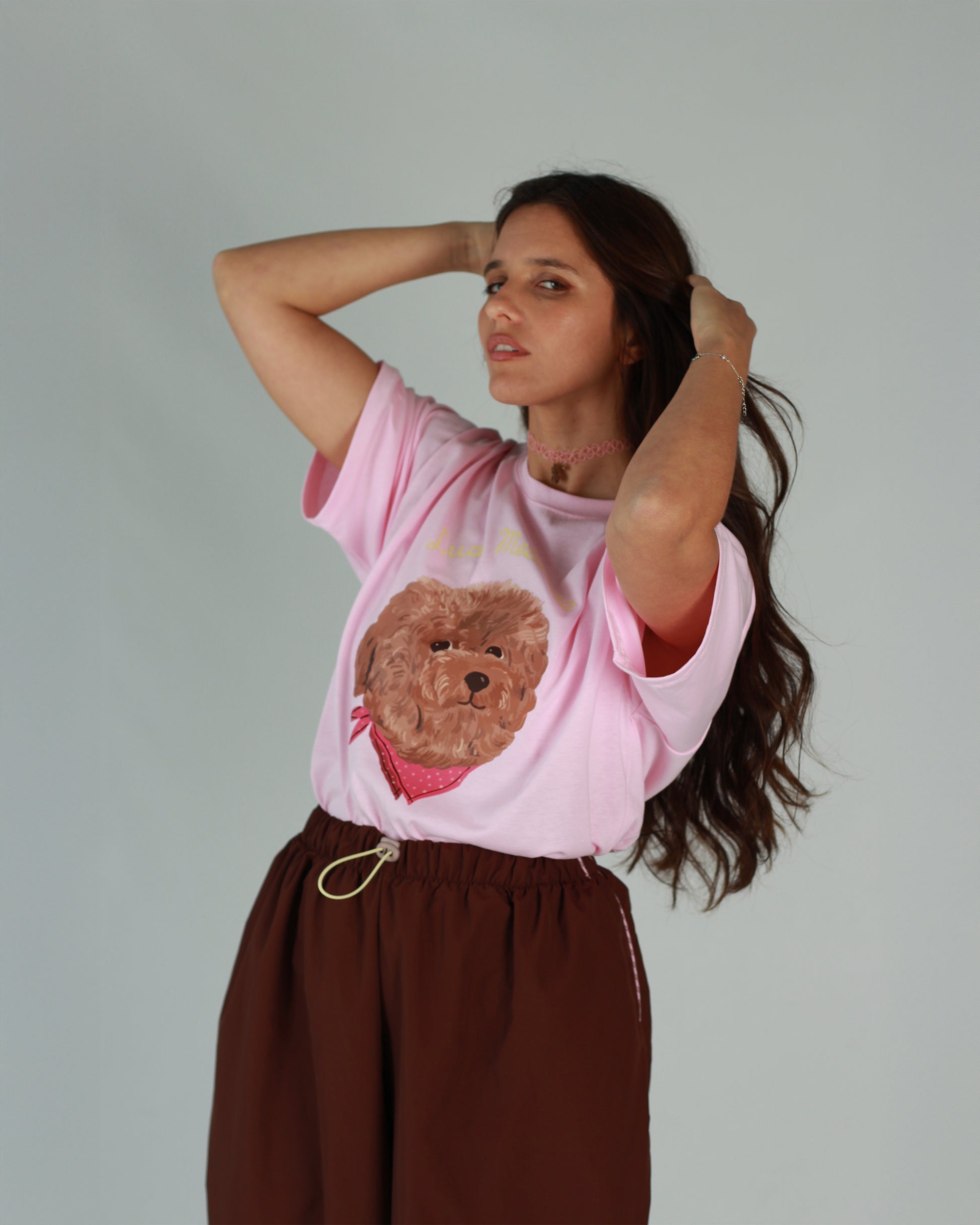 T-shirt de decote redondo e manga curta. Pormenor de estampado na frente.